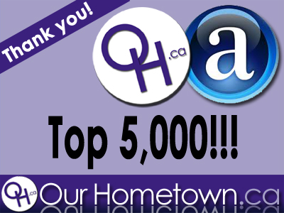 Our Hometown website now ranked among the top 5,000 sites in Canada!