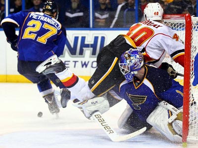 The Calgary Flames continued their losing ways Friday night as they were shutout by the hometown Blues. The scoring opportunities were certainly there for the taking as the Flames managed three breakaways and two hits post, but were unable to sneak anything by starting goaltender Brian Elliot.