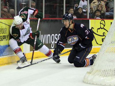 Eberle picked up another two points in the losing effort, giving him forty-nine on the season, extending his lead atop the AHL scoring race to four points over teammate Justin Schultz. Hall , who opened the scoring with his thirteenth of the season, moved the talented winger into sole position of fifth place in league scoring.